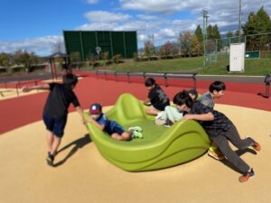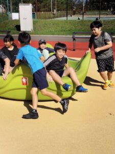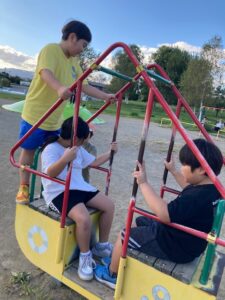 運動公園では過ごしやすい気温の中、各々好きな遊具で遊んだり、回る遊具に乗ってぐるぐる回ったり思いっきりあそんでいました🌞