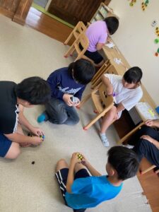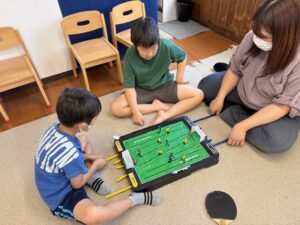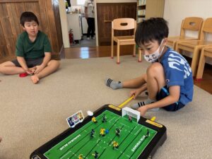 室内ではみんな新しい玩具に夢中でサッカー盤で試合を楽しんだり引き続きルービックキューブが流行っていて室内でも楽しんで過ごしています⚽