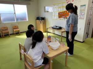 今年のお誕生会は七飯小学校のみんながおやすみだったのでみんなで買い出しに行ってお誕生会のホットケーキ作りをしました!🥞