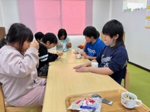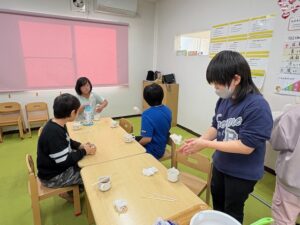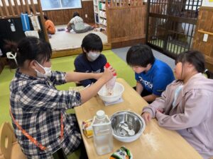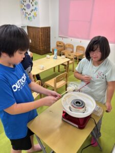 この日は競馬場に行く予定でしたが大雨で外に出ることもできず室内でうどん作りをしてゆったりと過ごしました☔もう何度目かのうどん作りなので子どもたちも慣れた手つきで作り上げたり、初めての子に丁寧に教えてあげたりと、うどん作りを楽しんでいました!おやつでは機械を出してみんなでわたあめを作って楽しみながら食べました🍭