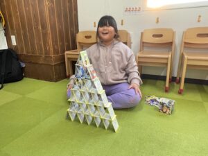 寒さや雪も降り始め室内で遊ぶ事も多くなってきましたがいろいろな遊びを考えて室内ならではの楽しみ方をしています!最近はボールを使ってドッジボールやバスケットボールをして体を動かすことも増えて室内でも元気いっぱい楽しんでいます🥎