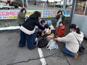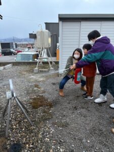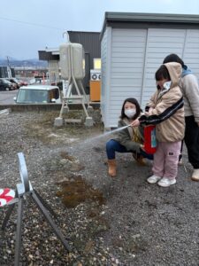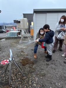 青森東方沖を震源とする地震が起きた翌日ガリレオでは地震から火災が起きた想定の避難訓練を行いました!訓練が始まる前に前日の地震の事やどのように非難するか「お・は・し・も・ち」の確認を一緒にしてから行いました🔥前日の事が心に残っている為、みんな真剣に話を聞いていました👂避難が終わった後には水消火器を使って消火訓練も行いました🧯