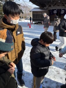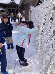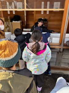 亀田八幡宮へみんなで初詣🎍お賽銭を入れてお参りをした後は、おみくじを引きました。「家族で行った時の方が良かった」との声も聞こえましたが、気落ちする事無く結び付けている様子に成長が見られました(^-^)