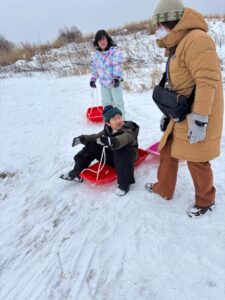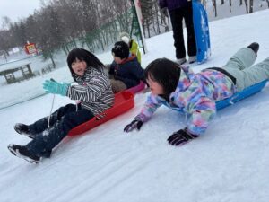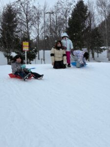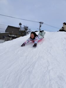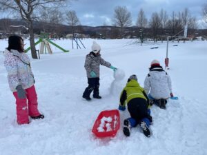 スノーパークではレジャーシートで滑る事に初挑戦!少し怖がって様子を見ていた子たちも、他の子たちが楽しんでいる様子を見て「自分もやってみる!」と挑戦する様子が見られました⛄🛷雪玉を作るおもちゃも新しく買ったので、雪玉づくりを楽しむ子たちも多くいました(^^♪