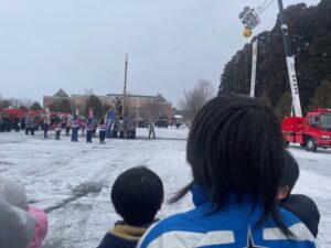 毎年の恒例になっている七飯消防の出初式へ見学に行きました🚒興味のある子ない子分かれますが、高い梯子の上で行われるパフォーマンスに「おぉ~!!」と歓声が上がっていました(^○^)