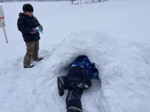 12月は雪遊びができなかったので、年明けからはほぼ雪遊びにお出かけです☆昨年の事を思い出しながら、雪遊びの約束を思い出し確認しながら遊んでいます♪