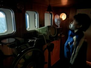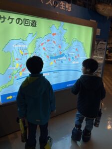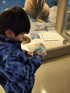年に一回のお楽しみ♪北洋資料館では、船乗り体験がやっぱり人気です!順番待ちをしながら繰り返し操縦係やスタートのボタン係を楽しんでいました🚢新しく導入されていた説明のQRコードカードに興味津々で持ち帰っている子もいました🌝