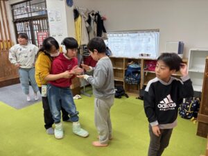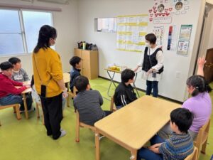 レクリエーションでは、ジェスチャー伝言ゲームを行いました(^^♪前の人の動きをしっかり読んで次に伝えること、難しいかな?と思っていましたが、みんな上手!!オリジナルで付け足して伝えることもできたり、初めての挑戦でしたが褒めポイントがたくさん見つかりました⭐