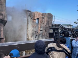 この日は三連休の真ん中ということもあり間歇泉には多くの人が来ていました!少し肌寒い中、間歇泉が噴き出すのを眺めて過ごしました!丁度、足湯に浸かっていた人が一気に引けたため、みんなで入って温まることが出来ました♨肌寒かったこともあり、ゆっくり足湯に浸かって癒されました♪